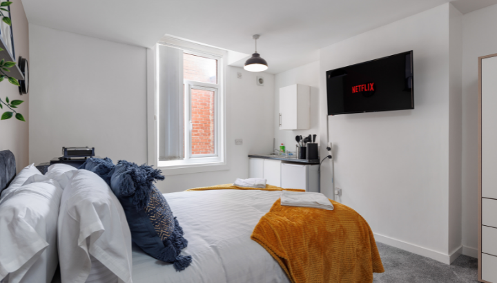A cosy and spacious fully furnished studio conveniently located in the heart of Middlesborough town centre with many shops, restaurants and entertainment only a short walk away.